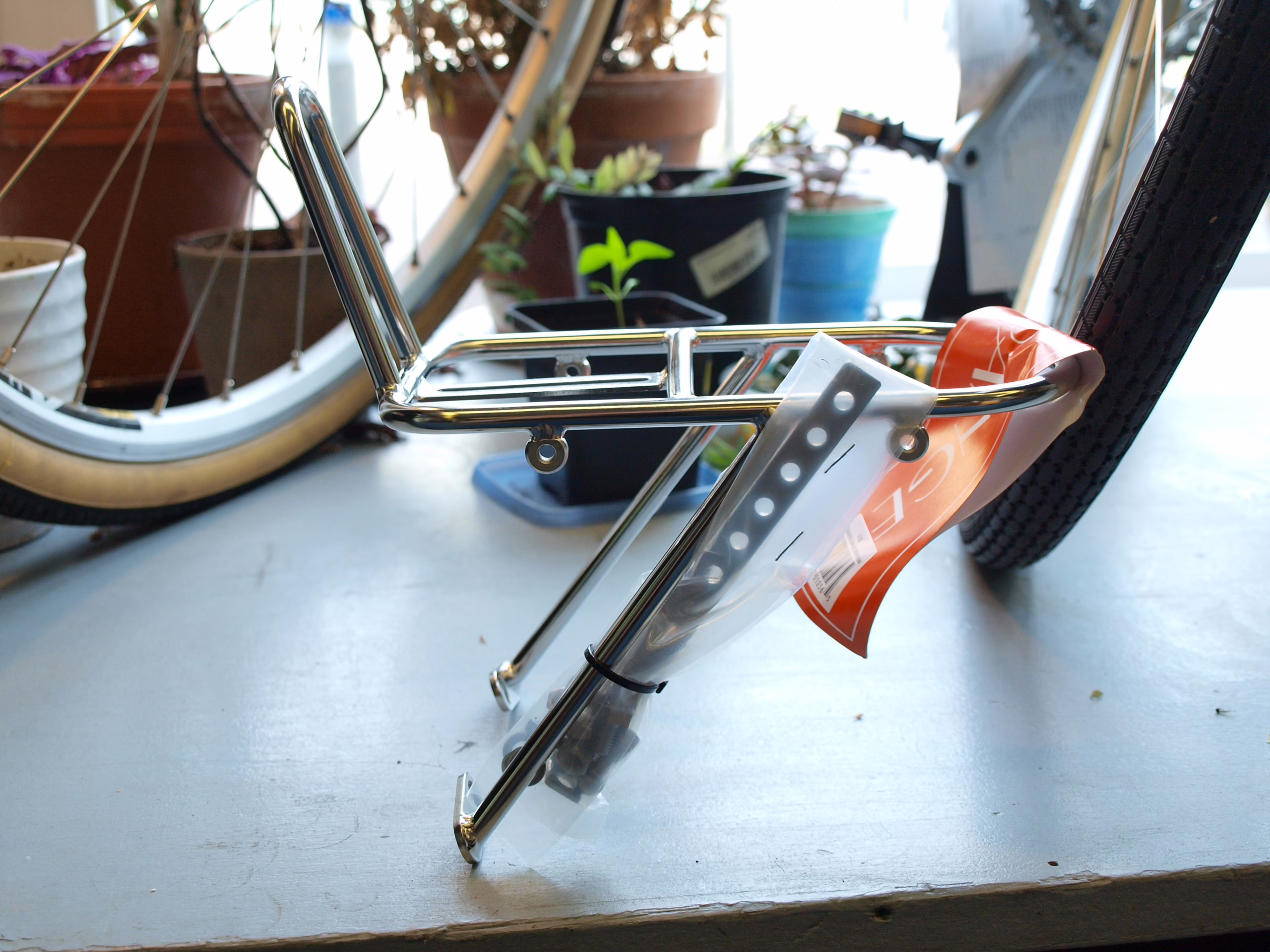 Velo Orangen pieni etutarakka, ihanteellinen randolaukun kanssa. Kiinnitys cantilever-tappeihin mukana tulevilla erikoisruuveilla.