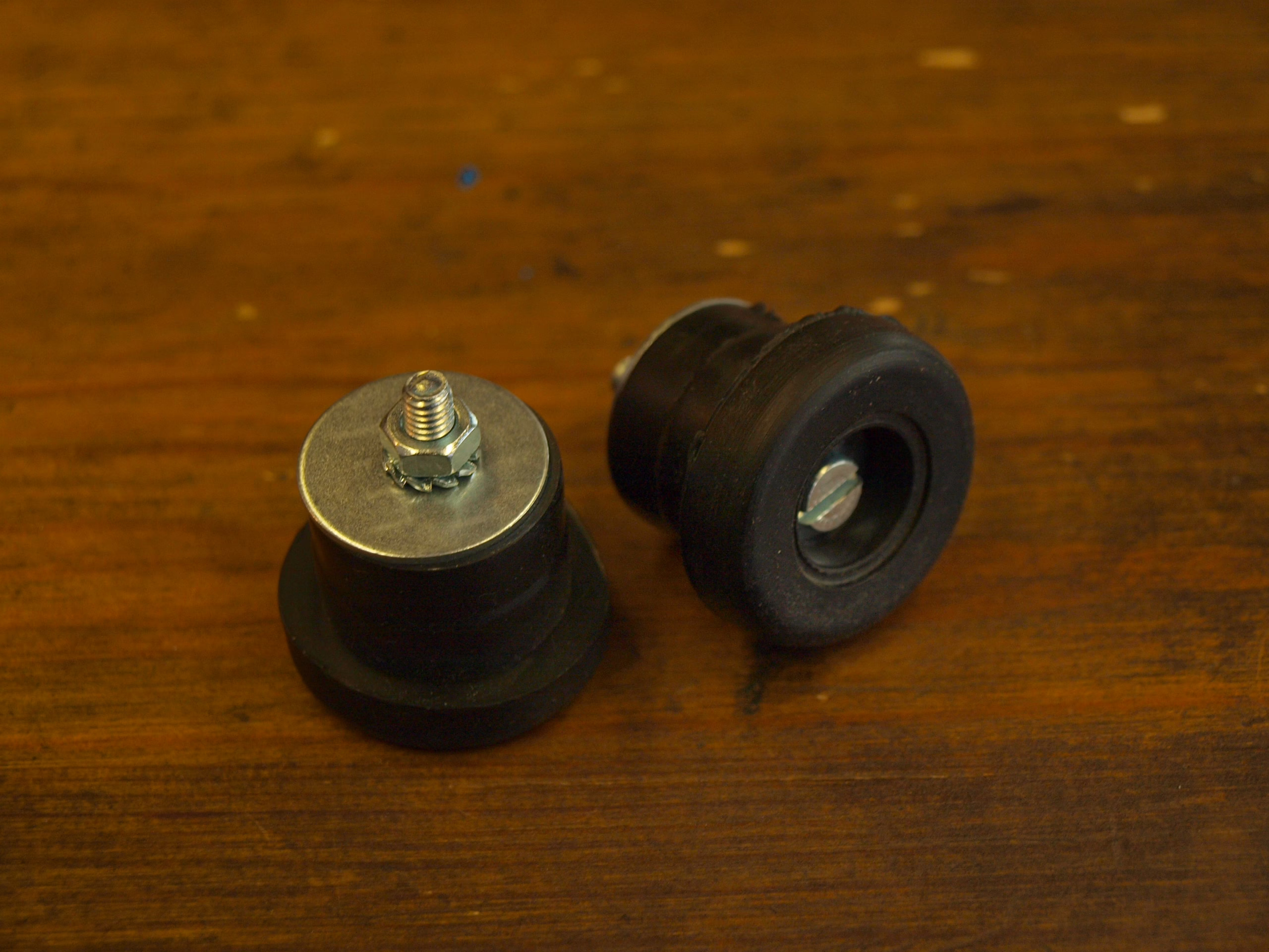 Ranskalaiset kumiset tangonpäätytulpat. Ruuvilla kiristyvä mekanismi pitää tulpat hyvin paikoillaan. Sopii kaikkiin droppitankoihin. Paksuseinämäisiin tankoihin voi joutua hieman pakottamaan paikalleen mutta mahtuu kyllä niihinkin.